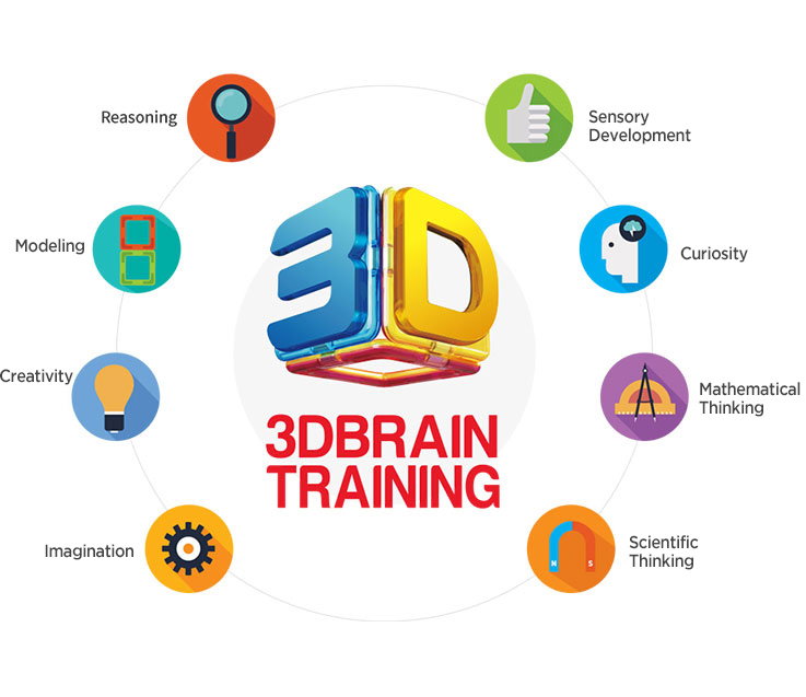 ‘Magformers 3D Brain Training’ helps develop a three-dimensional brain that organically interlinks and balances the eight essential mental capabilities of sensory development, modeling, creativity, curiosity, mathematical thinking, imagination, scientific thinking and reasoning.
