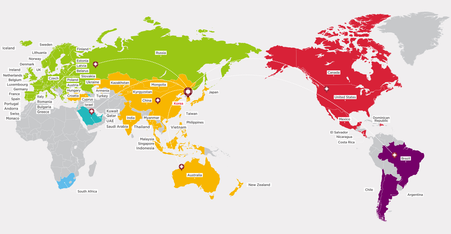 Australia, China, India, Japan, Kazakhstan, Korea, Kyrgyzstan, Malaysia, Mongolia, Myanmar, New Zealand, Philippines, Singapore, Taiwan, Vietnam, Indonesia, Thailand, Turkey