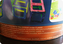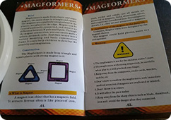 This is the booklet (unfortunately referring to the fake product as “Magformers”). Unlike what is stated in the booklet, genuine Magformers® come in more shapes than just squares and triangles, but the bigger concern is of course the danger associated with the inferior fake product.
