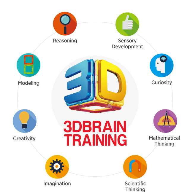 ‘Magformers 3D Brain Training’ helps develop a three-dimensional brain that organically interlinks and balances the eight essential mental capabilities of sensory development, modeling, creativity, curiosity, mathematical thinking, imagination, scientific thinking and reasoning.